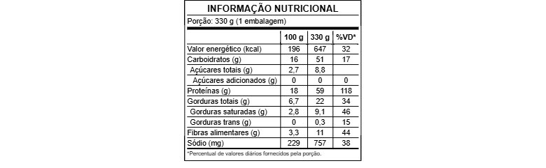 Atenção: Mantenha congelado até -18°C, uma vez descongelado, não congelar novamente.